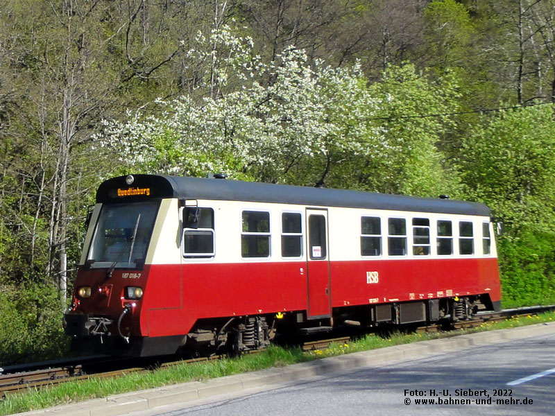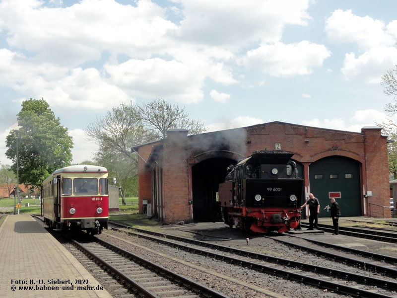 | Im Mai 2022 treffen jeden Tag in der 11. Stunde drei Triebwagen in Stiege ein. Zunächst kommen Zugnummer