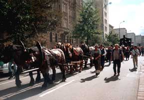 wurde von 16 Pferden von der Hartmannstraße durch die Straße der