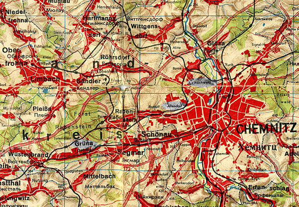 einer alten Karte "Chemnitz-Plauen-Zwickau und ihre weitere Umgebung"